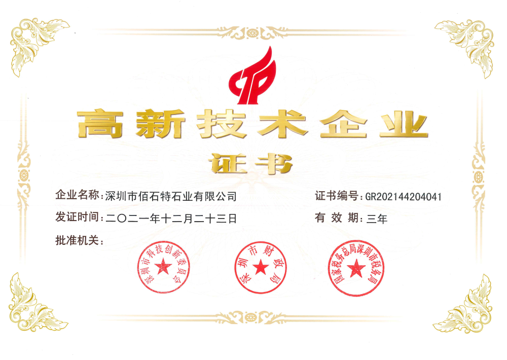 (佰石特石業(yè)“高新技術(shù)企業(yè)”證書(shū))